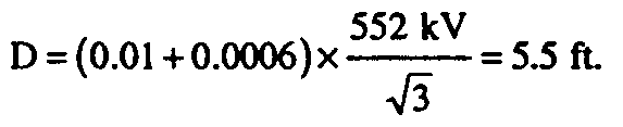 D=(0.01 + 0.0006) x 732 kV divided by square root of 2